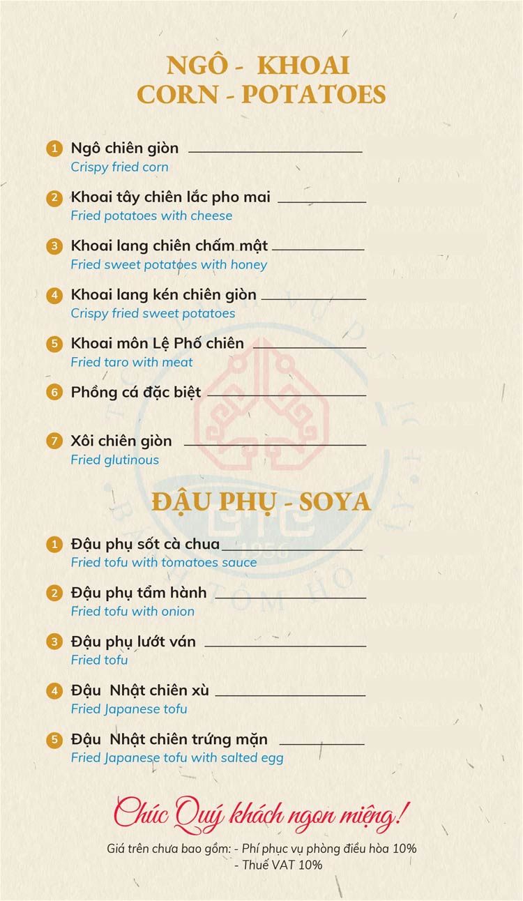 Trang chủ > Thực đơn > Ngô - Khoai - Đậu phụ